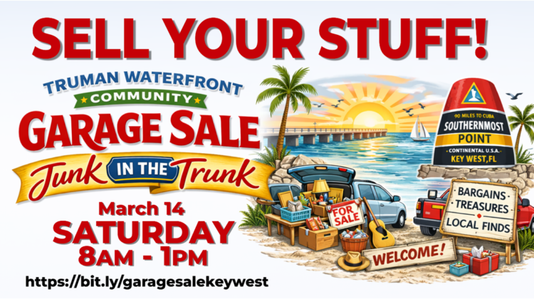 Key West, FL — The inaugural Truman Waterfront Community Garage Sale: Junk in the Trunk will take place on Saturday, March 14, from 8:00 AM …