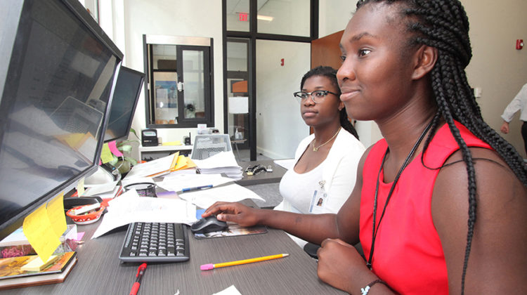 Idle Hands Summer Youth Employment Program alumni Marie Willy, foreground, and Blondine Conserve, are pictured working at City Hall in 2019. The 2021 program, which …