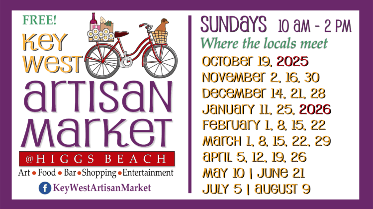 The Key West Artisan Market kicks off its 13th season with the “Welcome to the Party” Fantasy Fest edition Sunday, October 19, 2025, in the …